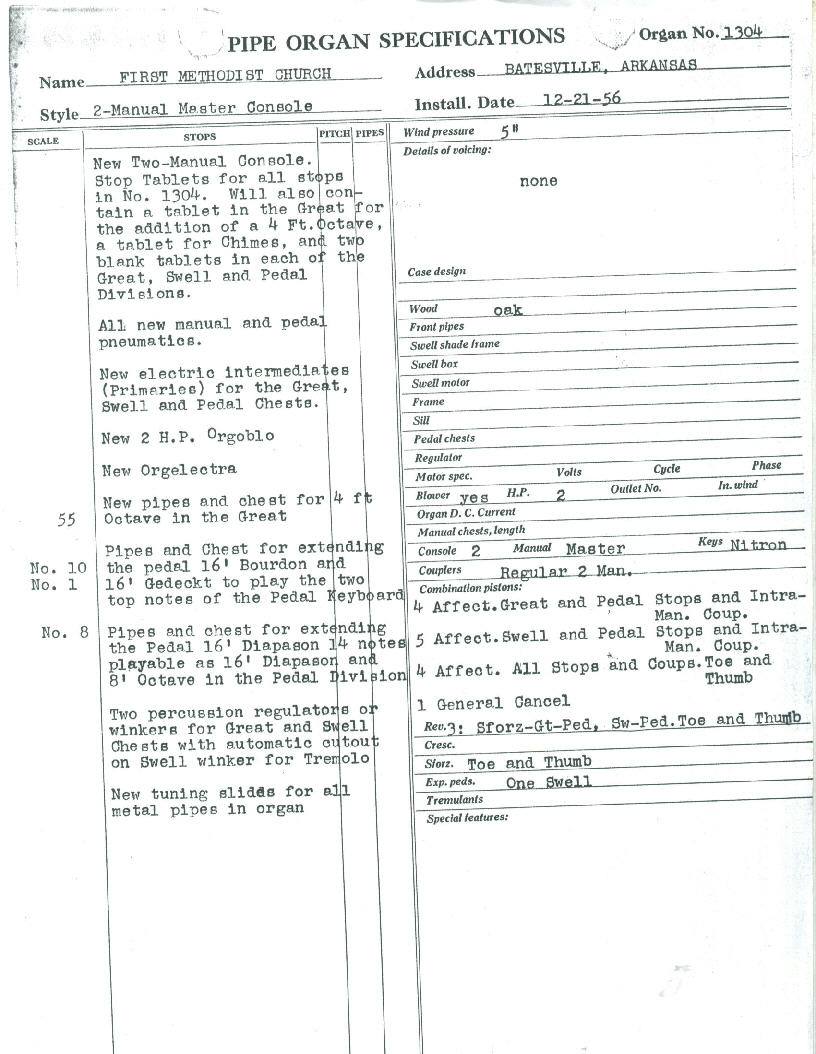 1956 - New 2 manual console, plus extensions to ranks as noted above.