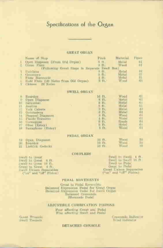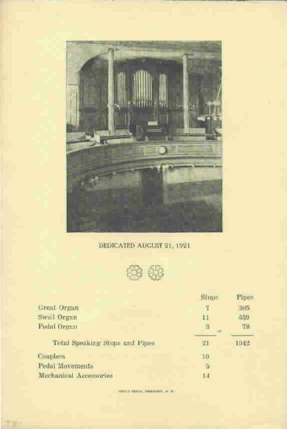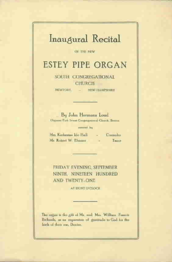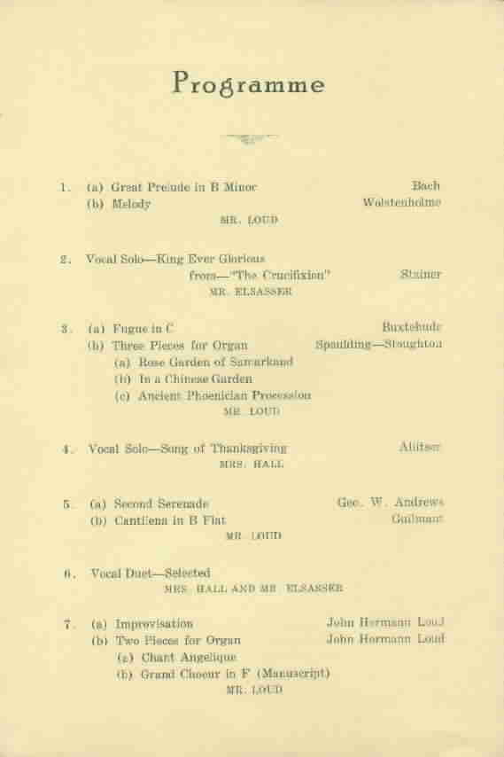 Organ Dedication, Septermber 9, 1921 - John Hermann Loud