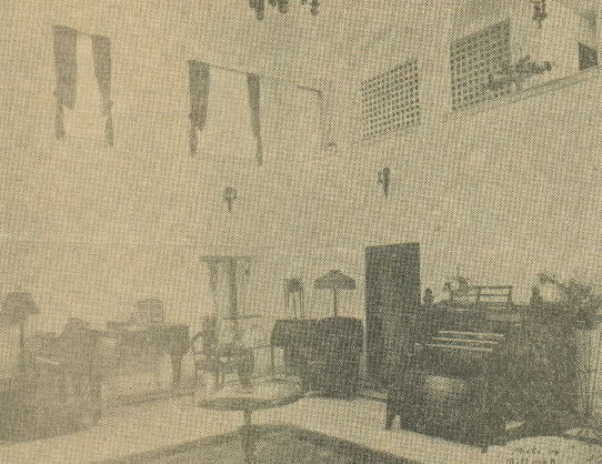 This music room is in the beautiful new home of Mr. and Mrs. George Freymark on Park Circle. The home is of the Mediterranean type and the music room is of Italian design. A three-manual Estey organ, 26 stops, harp and chimes, is installed in the music room.  The organ is beautifully voiced by Mr. Fanjoy and Mr. Douglass, of Brattleboro, VT