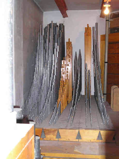 Swell (enclosed) 8 Geigen Diapason 8 Concert Flute 8 Viola da Gamba 8 Viola Celeste 4 Principal 4 Chimney Flute III Dolce Cornet 8 Trumpet 8 Oboe 4 Clarion Tremolo Pedal 16 Open Diapason 16 Rohrbourdon 16 Lieblichgedeckt 8 Principal 8 Flute 4 Super Octave 16 Posaune 8 Trumpet |