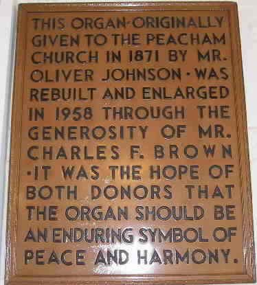On July 24 ,1870, Peacham native Oliver Johnson, who bad prospered in New York City, offered the church an Odell organ