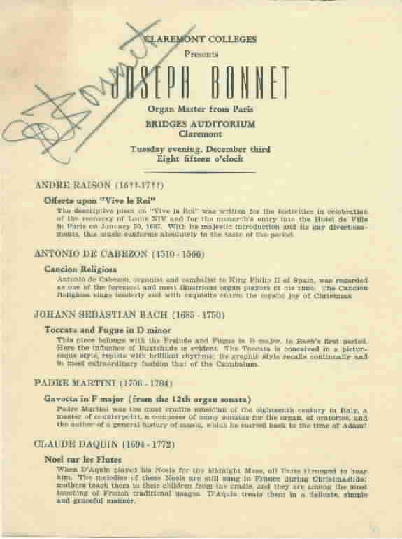 College, Claremont, CA. The auditorium and the organ were the gifts of